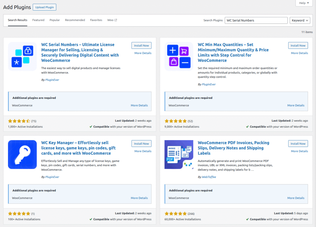 - Baixe o plugin WC Serial Numbers do repositório WordPress.org.